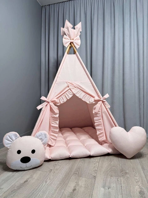 Вігвам для дитини XRMASTER Пухнасті друзі Пудровий з об'ємним ковриком