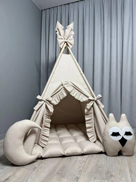Вігвам Бежевий будиночок 20 з матрасиком БОНБОН Повний комплект 0237
