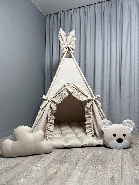 Вігвам для дівчинки Бежевий будиночок 2 з матрасиком БОНБОН Повний комплект 0198