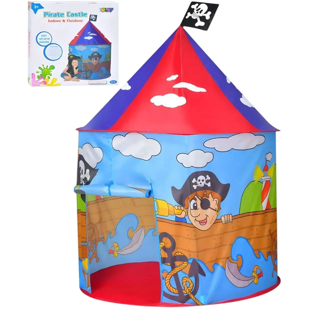 Дитячий намет Bambi M 3317 Будиночок з піратом з сітчастими вікнами та легким входом (105x105x125 см)