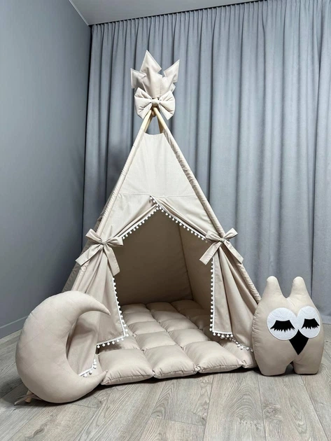 Вігвам-намет Ніжний беж 17 з матрасиком БОНБОН Повний комплект 0134
