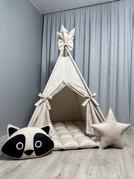 Вігвам-намет Ніжний беж 17 з матрасиком БОНБОН Повний комплект 0134