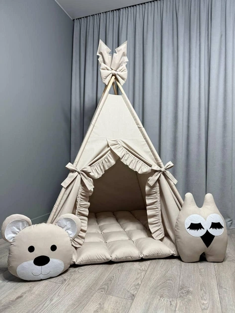 Намет-вігвам Бежевий будиночок 6 з матрасиком БОНБОН Повний комплект 0204