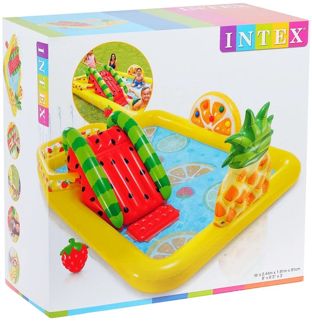Intex надувний ігровий центр Фрукти – дитячий басейн з гіркою, водний майданчик 24419191 см