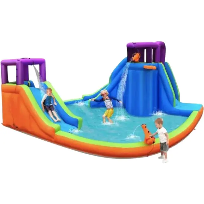 Надувна водна гірка Costway Canons з водяними пістолетами та баскетбольним кільцем (без вентилятора)