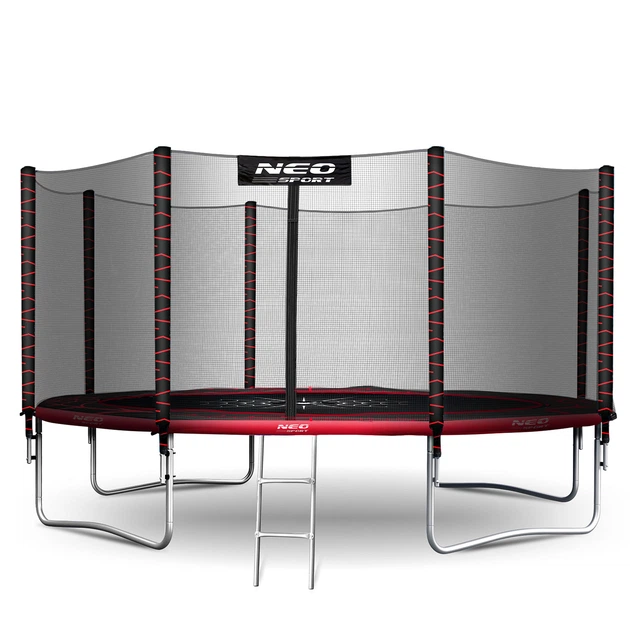Батут Neo-Sport із зовнішньою сіткою 12 футів 374 см чорно-червоний
