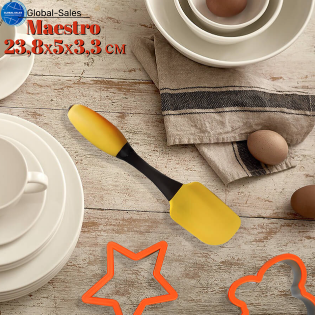 Лопатка з антипригарним покриттям нейлон+силікон 25,7х12 см Жовтий/Блакитний (vol-907)
