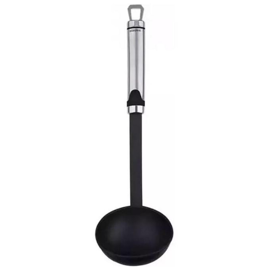 Ополоник Bergner Gizmo, 32,5 см (BG-3244) Ополоник Bergner Gizmo виготовлений із термостійкого нейлону, який є ідеальним вибором для використання з посудом з антипригарним покриттям. Його ніжні матеріали не дряпають поверхню, зберігаючи цілісність покриття протягом тривалого часу. Практична металева ручка не тільки зручна у використанні, але й залишається прохолодною під час приготування їжі,
