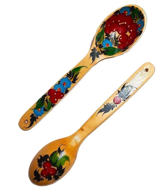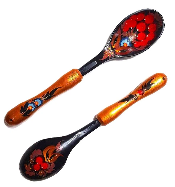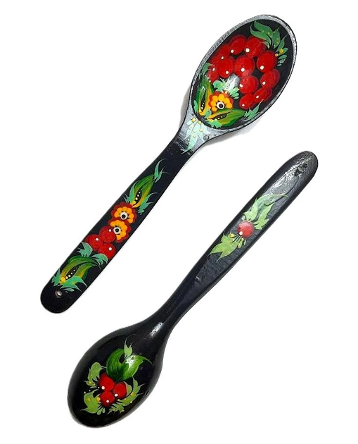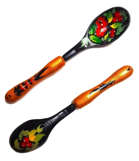 Подарункова ложка з петриківським розписом Калина 25 см темна малюнок 4