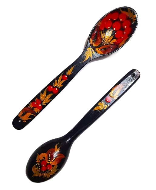 Подарункова ложка з петриківським розписом Калина 25 см темна малюнок 1