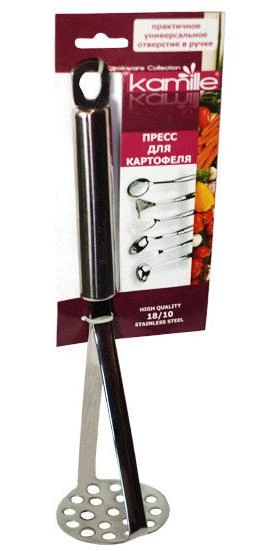 Прес для картоплі Kamille Crystal 28см з нержавіючої сталі з порожнистою ручкою (KM-5051)