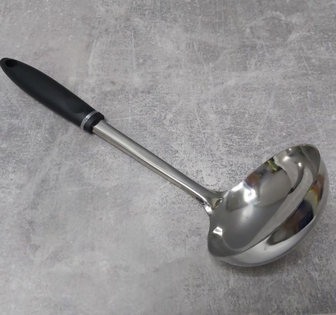 Ополоник з нержавійки на кухню з пластиковою ручкою Черпак кухонний для супу з нержавіючої сталі L31cm 100мл 05486