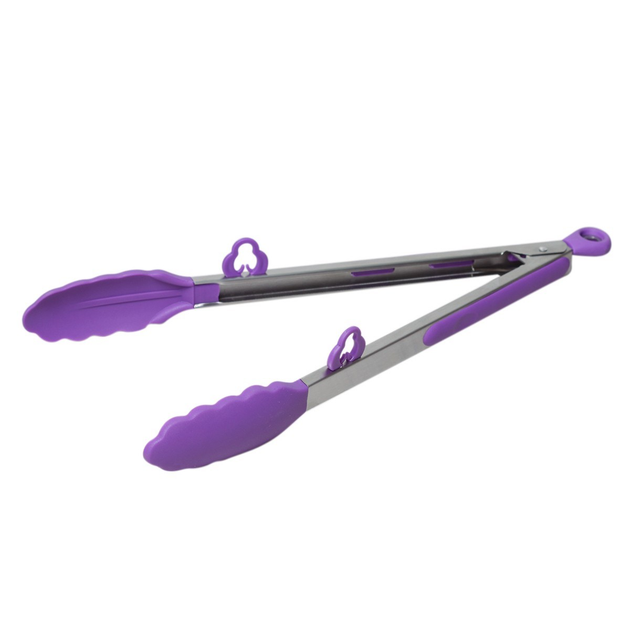 Щипці Kamille силіконові 35.5 см з ручками з нержавіючої сталі фіолетові KM-7513