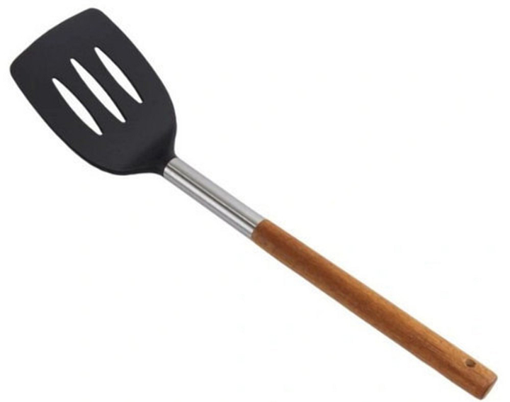 Чорна силіконова кухонна лопатка з прорізами 30 см