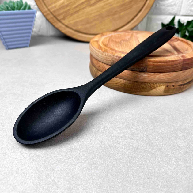 Чорна силіконова кухонна ложка з довгою ручкою