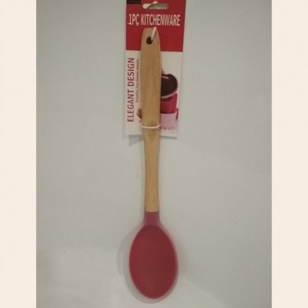 Лопатка силікон з дерев'яною ручкою та прінтом Stenson MH-3402 29.5* 5* 1см