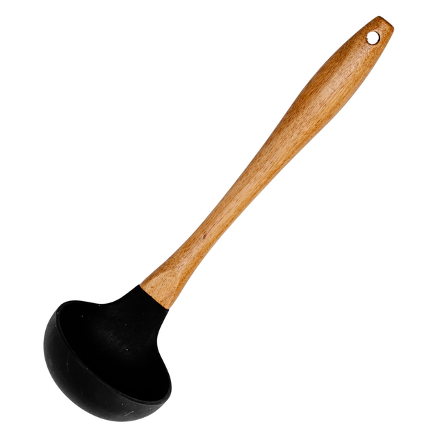 Ополоник силіконовий кухонний 27 (см) кухонний ополоник з силікону з дерев'яною ручкою для супу, бульйону HP-8-58
