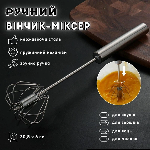 Ручний вінчик-міксер HandMixer, 30,5 см, сріблястий