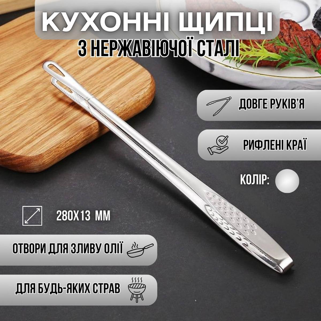 Кухонні щипці з нержавіючої сталі CheffGrip, 280 х 13 мм, сріблясті