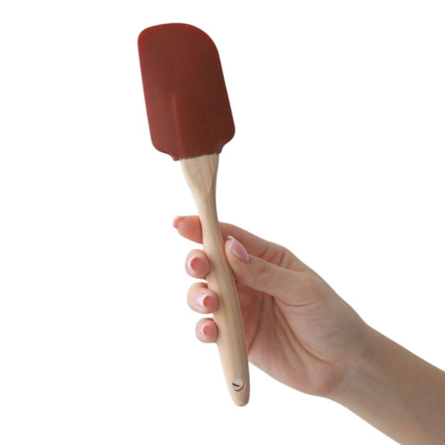 Силіконова лопатка з дерев'яною ручкою, коричневий|PROFSIL