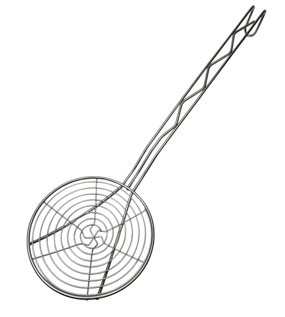Шумівка "Павук" з дерев'яною ручкою 24 см, Для фритюру та Вок, Металева ложка-сітка з нержавіючої сталі