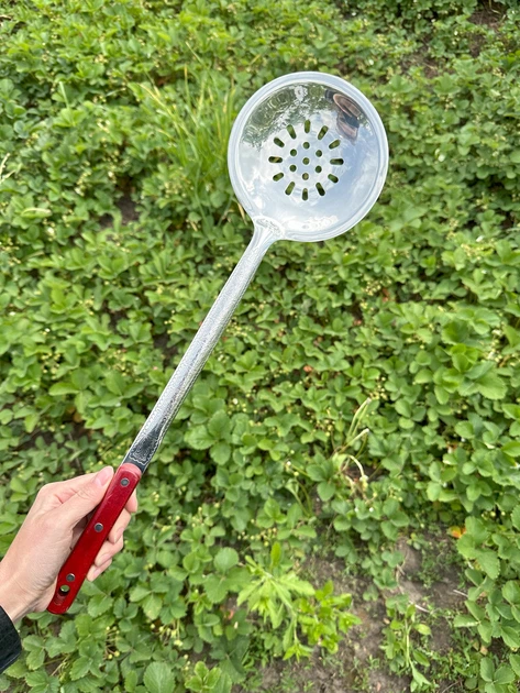 Шумівка з нержавіючої сталі з дерев'яною ручкою, 39 см, коричнева