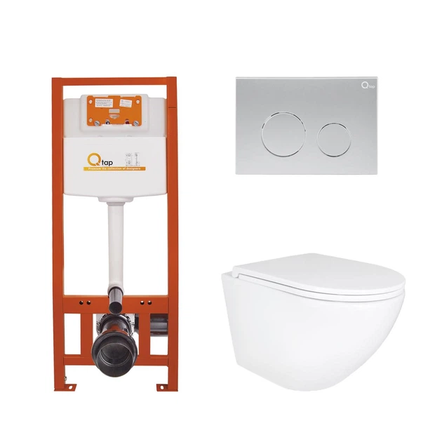 Готове рішення Qtap для ванної кімнати: підвісний унітаз Robin 520x365x365 + комплект інсталяції Nest 4 в 1 (квадратна клаві