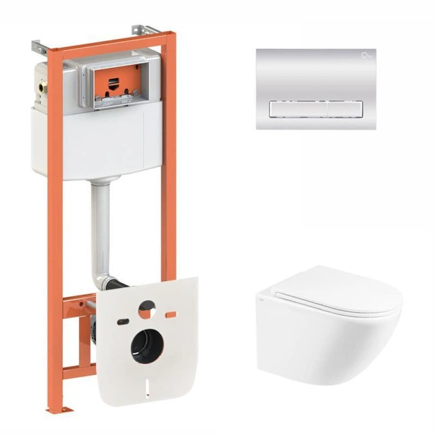 Готове рішення Qtap для ванної кімнати: підвісний унітаз Robin 520x365x365 + комплект інсталяції Nest 4 в 1 (квадратна клаві