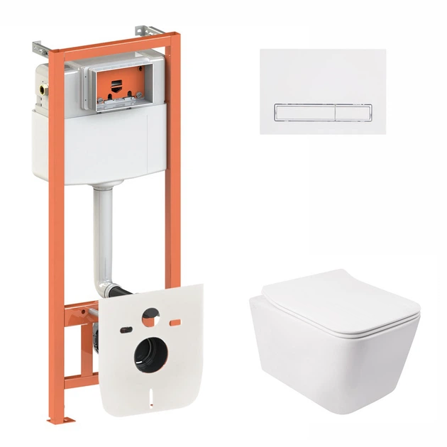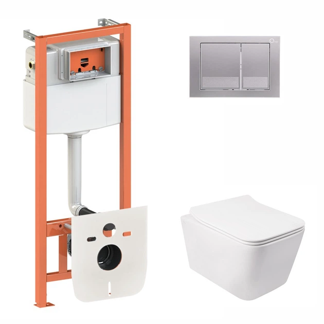 Готове рішення Qtap для ванної кімнати: підвісний унітаз Crow Rimless 520х360х290 + комплект інсталяції Nest 4 в 1 (квадратн