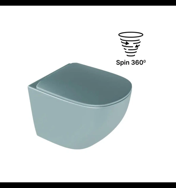 Унітаз підвісний без обідка 48х36 см з сидінням Soft Close Excellent LUQA, м'ятно-блакитний матовий