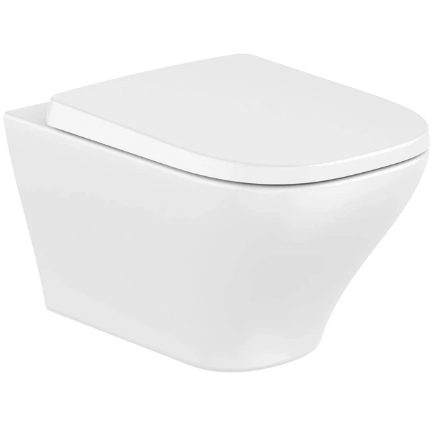 Унітаз підвісний безобідковий білий ROCA Airos із сидінням з мікроліфтом A34HC10000
