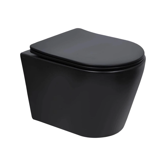 Унітаз підвісний Black Long 51 см безободковий округлий із сидінням Soft-close та системою змиву Tornado Qtap Scorpio Ultra