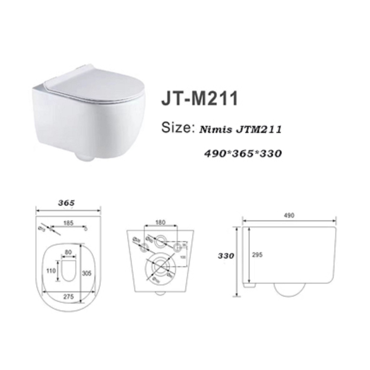 Унітаз підвісний Nimis JTM211 білий керамічний з сидінням Унітаз Nimis JTM211 — сучасна підвісна модель із лаконічним дизайном, що ідеально підходить для ванних кімнат будь-якого стилю. Виготовлений із санітарного фарфору високої щільності, він має глянцеву поверхню, стійку до подряпин, забруднень та дії побутової хімії. Гладке покриття перешкоджає накопиченню вологи й бактерій,
