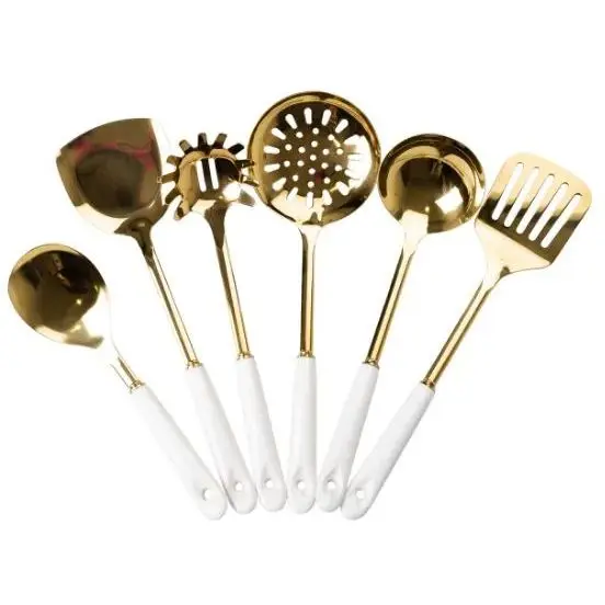 Набір кухонного приладдя з керамічною ручкою на підставці 6 штук Золото