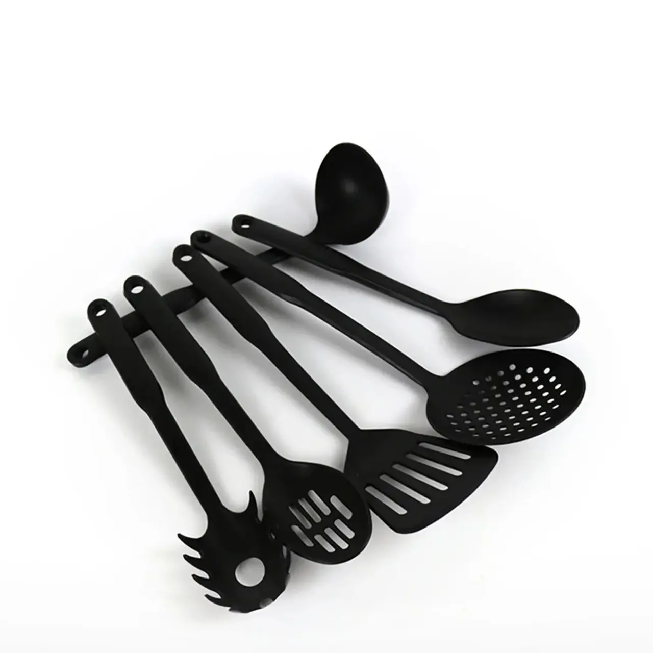 Набір кухонних речей пластиковий з 6 предметів (вінчик, ополоник, лопатка, щипці), Kitchen Master Чорний 86565