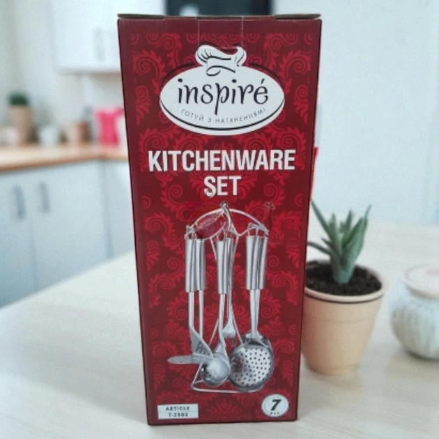 Набір кухонного приладдя Inspire T-2503 нержавіюча сталь 7 предметів з підставкою