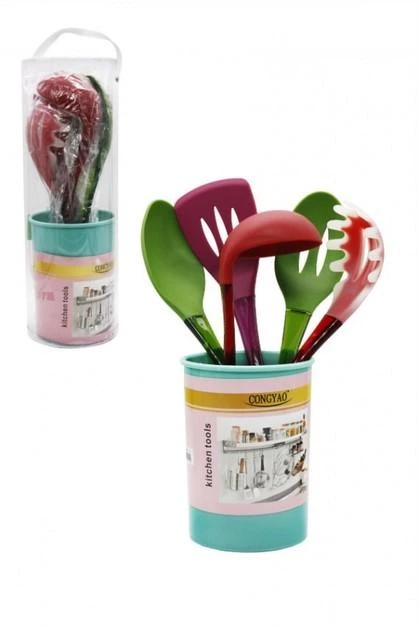 Набір №WF-06 кухонні лопатки і ложки 5 шт у круглій склянці силіконові