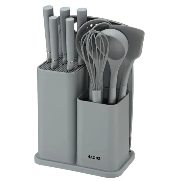 Набор кухонных принадлежностей Kitchen Set на 12 предметов / Силиконовый кухонный набор с подставкой (Sliver)