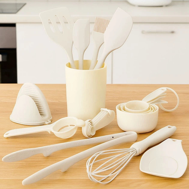 Набір кухонних речей тефлоновий з 6 предметів (віночок, ополоник, лопатка, щипці)