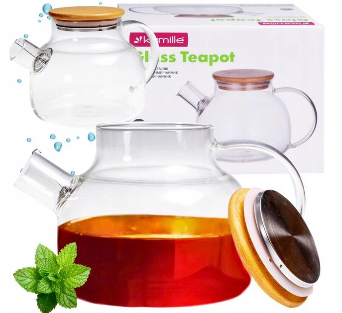 Заварник скляний 1500мл Kamille з бамбуковою кришкою з силіконовою прокладкою KM-9030M
