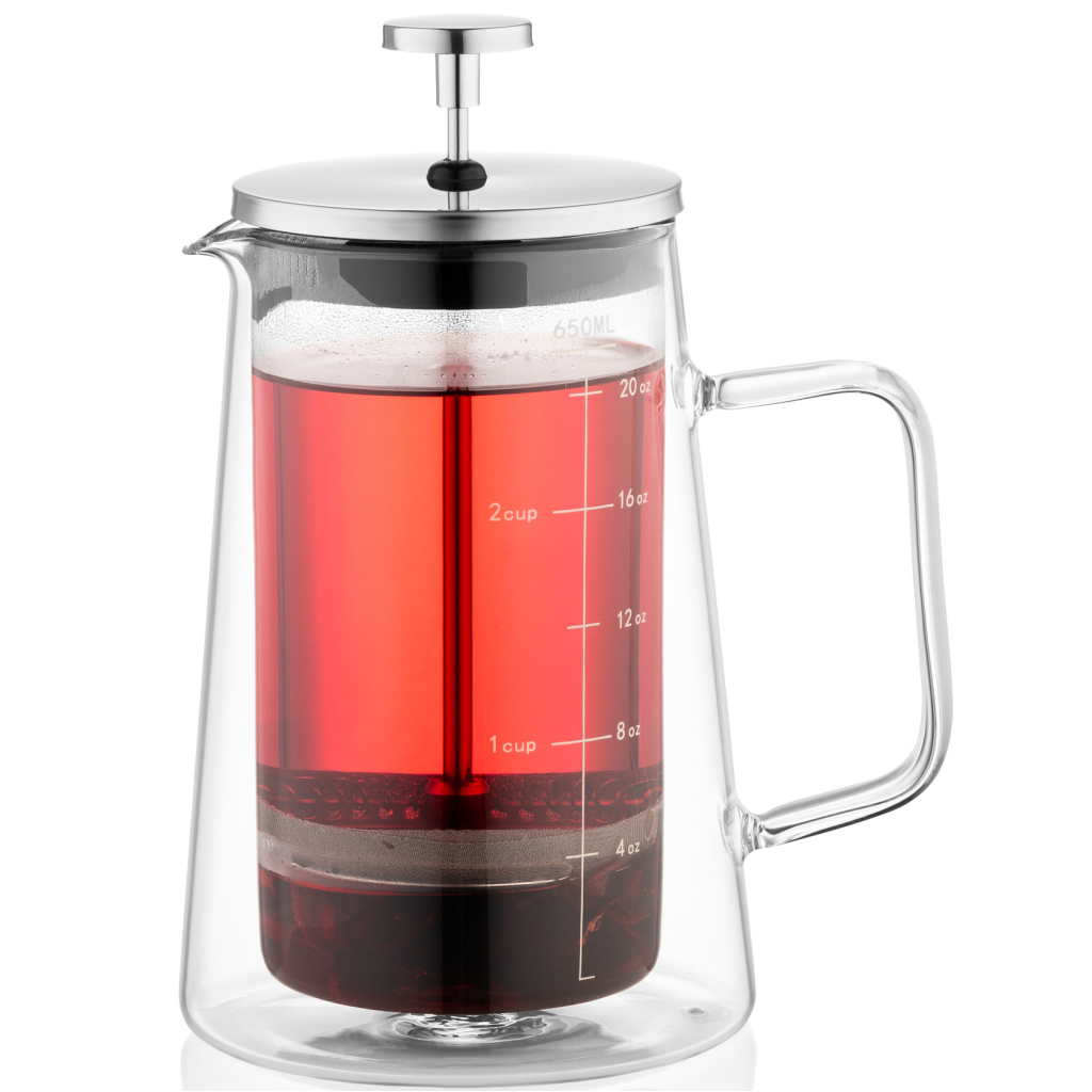 Френч-прес серії Gemini для приготування гарячих та холодних напоїв. Корпус чайника виготовлено з нержавіючої сталі, знімну колбу з боросилікатного скла, а фільтр з нержавіючої сталі. Підходить для очищення в посудомийній машині.