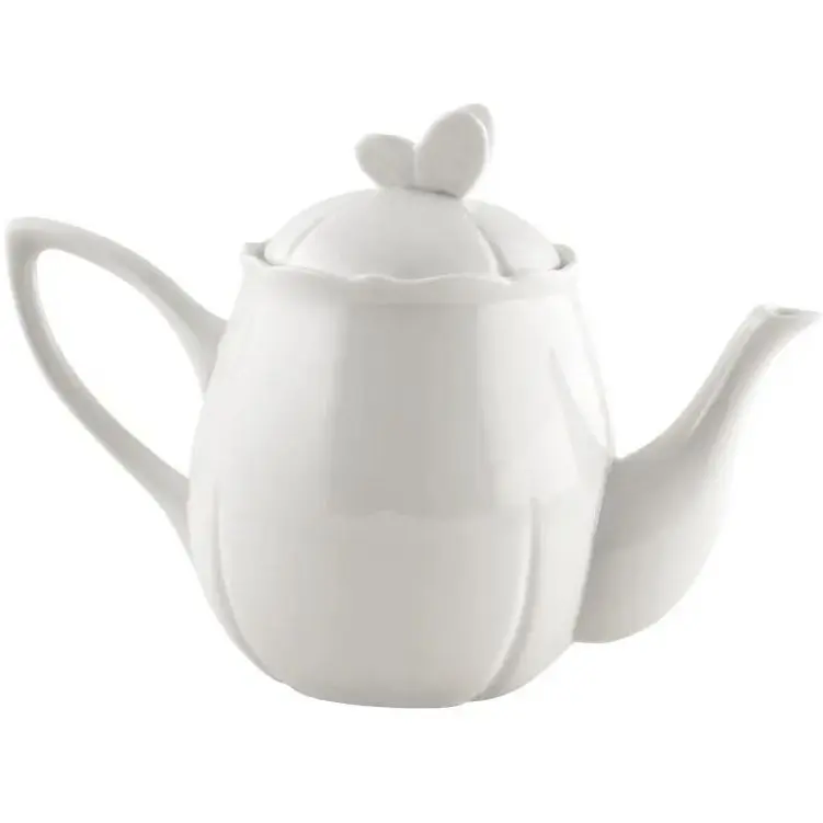 Чайник в сучасному стилі. За формою його елементи нагадують квіти – хвилясті верхні краї і характерна форма чаші. Це враження підтверджується ручкою кришечки у вигляді метелика. Абсолютно відсутній розпис, щоб не відволікати увагу від форми. Виготовлений з кістяної порцеляни. Кістяну порцеляну в Європі називали королівським або білим золотом. У Китаї, звідки він родом, за