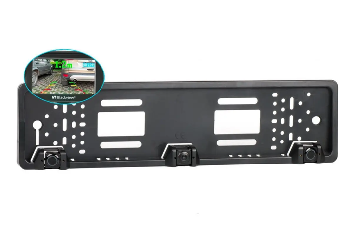 Камера заднього виду у рамці номери з датчиками паркування парктронік