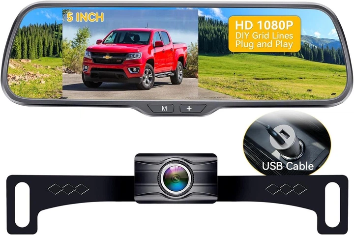 Автомобільна резервна камера Rohent HD 1080P Монітор 5-дюймова дзеркальна камера заднього Чорний