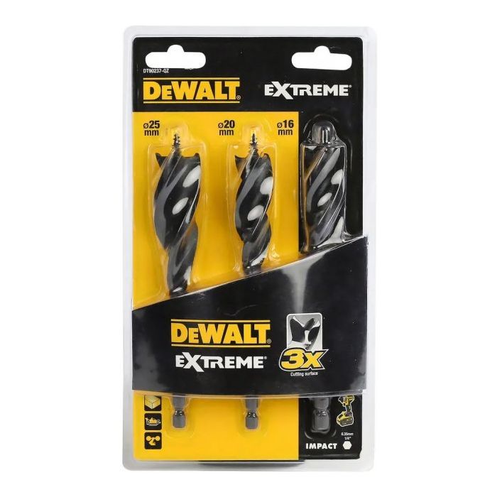 Набір свердл DeWALT по дереву EXTREME IMPACT, спіральні 3 шт, блістер (DT90237) DT90237