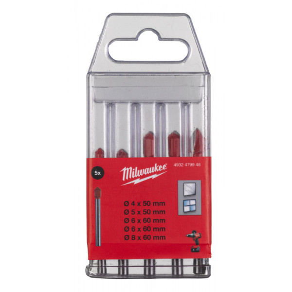 Набір свердел по склу та плитці MILWAUKEE GENII (4, 5, 6, 6, 8 мм) 4932479948