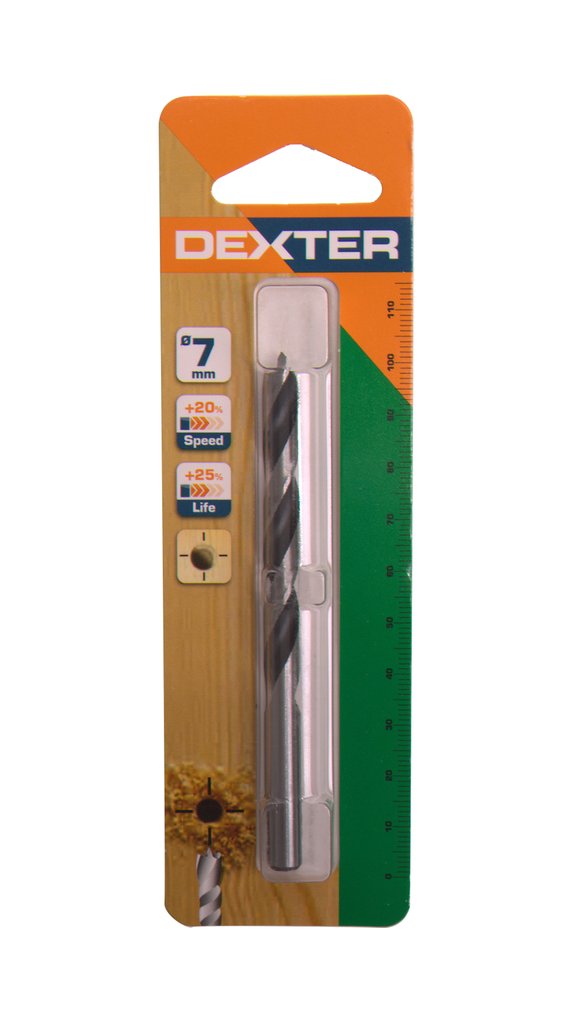 Бренд: Dexter; Діаметр, мм: 7; Інтенсивність використання: Систематично; Кількість в упаковці, шт: 1; Країна виробництва: Китай; Матеріал: CR-V; Призначення: Дерево; Робоча довжина, мм: 70; Тип хвостовика: Звичайний; Тип свердла: Спіральне