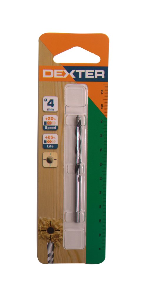Бренд: Dexter; Діаметр, мм: 4; Інтенсивність використання: Систематично; Кількість в упаковці, шт: 1; Країна виробництва: Китай; Матеріал: CR-V; Призначення: Дерево; Робоча довжина, мм: 45; Тип хвостовика: Звичайний; Тип свердла: Спіральне