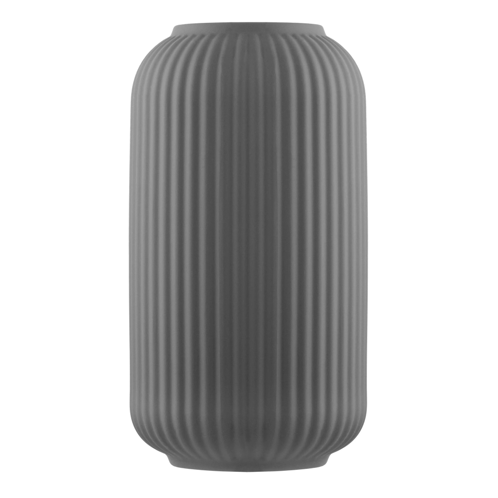 Вазу серії Imola виготовлено з порцеляни – матеріалу, який цінують за міцність і витончену фактуру. Крім того, порцеляна надає виробу шляхетності та довговічності. Сірий колір підкреслює чистоту й універсальність. Розмір вази становить 14 × 26 см. Ребриста поверхня створює виразну текстуру, яка надає особливого шарму та робить його естетичною оздобою. Вазу можна мити в посудомийній машині, зберігаючи її первинну красу та охайність.