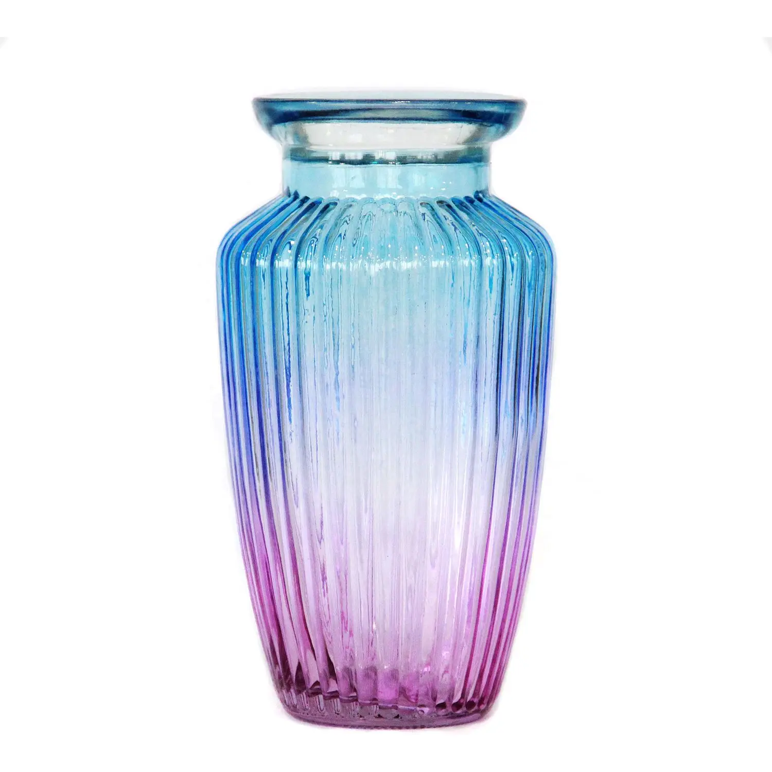 Ваза для квітів Crystal Jane lines скляна 21см рожево-синя (YBCG-240425-49)